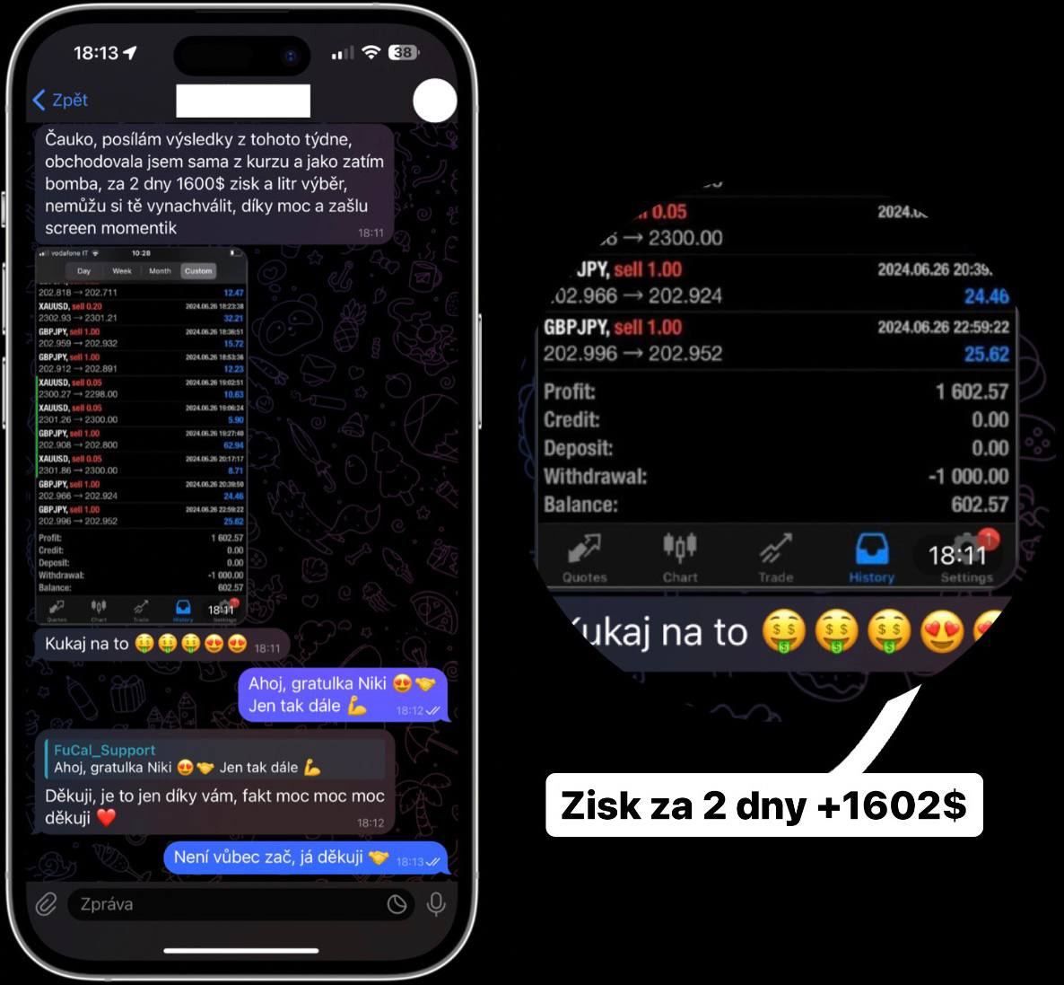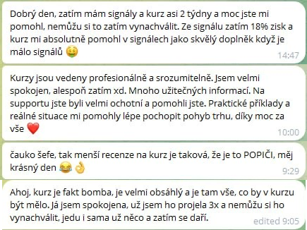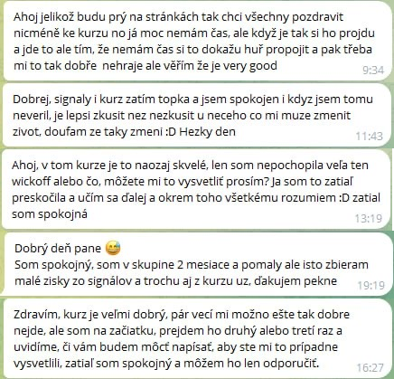 Poskytujeme informace z trhů již téměř 3 roky a naší strategií si prošly stovky lidí, někteří to již mají jako fulltime práci. Jsme kompletně transparentní a říkáme věci jak jsou, ne jak chceme aby zněly – toto nás rozlišuje od podvodníků, kteří vás chtějí jen oškubat. Veškeré služby jsou úplně ZDARMA.